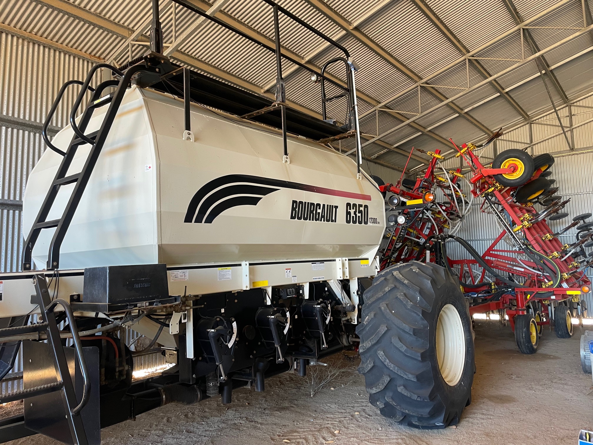 2016 Borgault Air Seeder with a 6350-air cart, 40’ bar 10 inch with hydraulic tynes and liquid system.